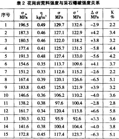 4花崗巖荒料強度與采石爆破強度的關系