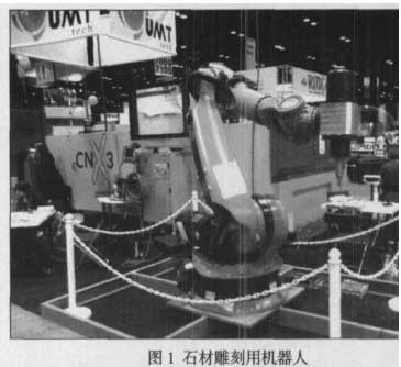 展會上展出代表最高技術水平的石材http://www.stonebuy.com/加工是機器人式石材http://www.stonebuy.com/加工設備,如石材http://www.stonebuy.com/雕刻用機器人(圖1),板材切割用機器人(圖2)和板材裝卸板用機器人(圖3)。這三種機器人是從同一套機器人母機,經過更換不同的機械http://www.stonebuy.com/machine/手終端,延伸出的三種不同用途的石材http://www.stonebuy.com/生產用機器人。