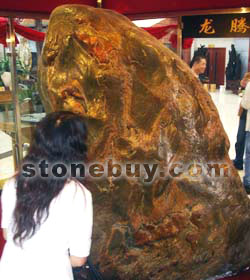 “這塊名叫龍騰盛世的金沙彩奇石就采自金沙江上游云南巧家,其總重超過十噸。奇石上面自然形成有數(shù)條彩龍和火龍,所以被命名為龍騰盛世。”趙世華表示,雖然曾經(jīng)有買家出價三百萬元收購龍騰盛世,但是作為鎮(zhèn)館之寶的龍騰盛世顯然是不會出售的。www.stonebuy.com