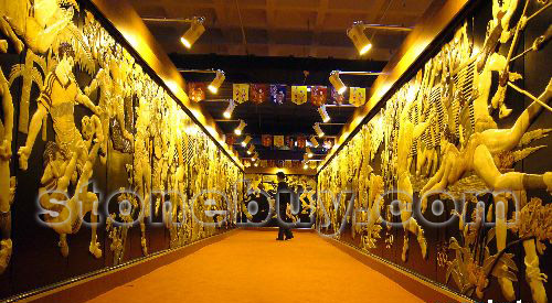 近日,“百年奧運,中華瑰寶”巨型玉、石雕《和諧奧運》漆器鑲嵌屏風長卷亮相北京文化創意博覽會,這是一件民間發起的奧運獻禮作品,是弘揚奧運精神,展現奧運百年歷史的稀世藝術珍品。《和諧奧運》漆器鑲嵌屏風高2.008米,總長88米,由136塊連屏組成,使用各種彩石20.08噸,預示著2008年北京奧運會的圓滿成功。