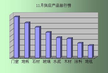 上圖我們可以看到,11月份石材http://www.stonebuy.com/、水泥、玻璃、木材等建筑材料的采購量很大,冬季在建工程很多,各大工程對這些建筑材料需求巨大。再看供應圖,可以得出門窗、地板市場http://www.stonebuy.com/enterprise/FuJian/QuanZhouShi.html供應量充足,達到了一個新高度,其他建筑材料卻是望塵莫及。mag.stonebuy.com