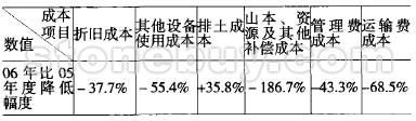 表4 2006年度單項間接開采成本比2005年度降低的幅度