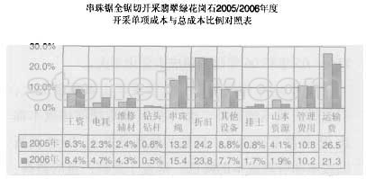 該公司對開采成本的分析,是建立在05和06年度,使用金剛石串珠鋸全鋸切方法,開采翡翠綠花崗石的開采成本統計數據的基礎上。