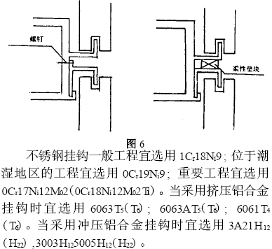2. 2 將掛鉤用環氧樹脂膠粘接在槽內,花崗石板的自重通過環氧樹脂膠縫傳給掛鉤,將花崗石板支承起來此時花崗石板下部弧形短槽與掛鉤粘接成一個整體,固定在主體結構上不能位移,當建筑物平面內變形時完全靠上部掛鉤在槽內移動調節,此時要對環氧胡旨膠縫構造作出規定并對粘接強度進行驗算(見圖5)。