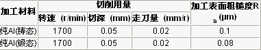 用刃磨合格的CVD金剛石厚膜焊接車刀在國產精密車床上進行加工Al棒的切削試驗,切削條件及加工結果見表3。