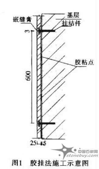 (4) 對(duì)石材http://www.stonebuy.com/的施工質(zhì)量, 起到了雙重保險(xiǎn), 一旦其中一項(xiàng)失效, 仍有另外一種連接固定, 安全放心。下面就膠掛法施工工藝( 圖1) 的全過程作一簡(jiǎn)述。