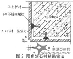 石材http://www.stonebuy.com/安裝順序應(yīng)由下向上逐塊分層進(jìn)行,安裝施工時(shí)將塊材用卡具和小木楔臨時(shí)固定和調(diào)正調(diào)平,用3m長(zhǎng)直尺和水平尺隨時(shí)調(diào)檢。陽(yáng)角處石材http://www.stonebuy.com/粘貼占見圖2。