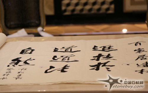 在程紹正韜口中提及頻率最高的一個(gè)詞是"自然"--文化的自然、歷史的自然、生態(tài)的自然、生命的自然。中國(guó)http://www.stonebuy.com自古倡導(dǎo)人與自然共生、萬(wàn)物與我同化,如果反而被物質(zhì)框住,那么有時(shí)候就成土豪了。豪宅的設(shè)計(jì)關(guān)乎空間與生活的思辨,設(shè)計(jì)的主題呈現(xiàn)從富到貴、從貴到雅、從雅到性的需求進(jìn)化論,最終回歸自然。一定程度上的高端豪宅,會(huì)特別講究場(chǎng)所精神,講究人與自然的融合,是具備人文內(nèi)涵的大藝墅。程紹老師強(qiáng)調(diào)設(shè)計(jì)中光線和材質(zhì)的肌理設(shè)計(jì),講求肌理化之后的內(nèi)化,認(rèn)為東西需要處理方可成藝墅品。在16日上午的卡斯維諾臺(tái)州旗艦店參觀活動(dòng)中,擷取天然大理石、精心處理設(shè)計(jì)的卡斯維諾生態(tài)石磚,得到了程紹老師的贊許,稱"在大陸的設(shè)計(jì)有了希望",并當(dāng)場(chǎng)揮毫題字"進(jìn)技于道,道法自然"。卡斯維諾·石磚以30多道現(xiàn)代工藝錘煉真石品質(zhì),以國(guó)內(nèi)獨(dú)有CNC雕刻技術(shù)創(chuàng)制高端背景墻,所謂進(jìn)技于道;以5mm天然石磚薄板的行業(yè)最高標(biāo)準(zhǔn),最大限度地保留石磚天成本質(zhì),是謂取之自然,法之自然。