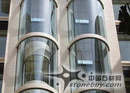 大跨度弧面觀光電梯幕墻采用熱彎弧形玻璃,層間跨度大,具有較好的視野和通透感,多用于高檔酒店和商業中心。