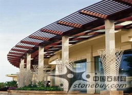 雨棚一般位于建筑門廳的入口處,可根據建筑的特點和風格設計成不同的造型,有懸挑拉桿結構、輕鋼結構、點駁接結構、玻璃幕墻結構、鋁板或石材http://www.stonebuy.com/裝飾的結構等。