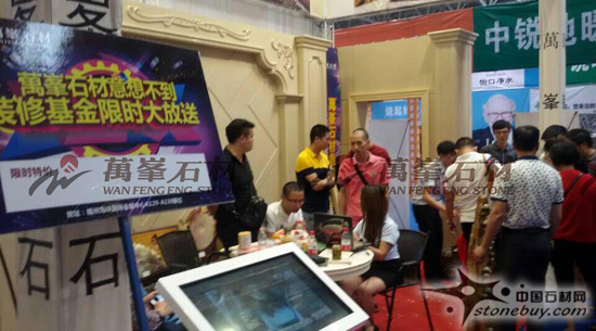 “掃微信砸金蛋”的環節更是把現場氣氛推至高潮,現場嘉賓品味萬峯產品http://www.stonebuy.com/sample/之余,也享受了一份輕松、愜意。整個展位氣氛熱烈,人氣爆棚。