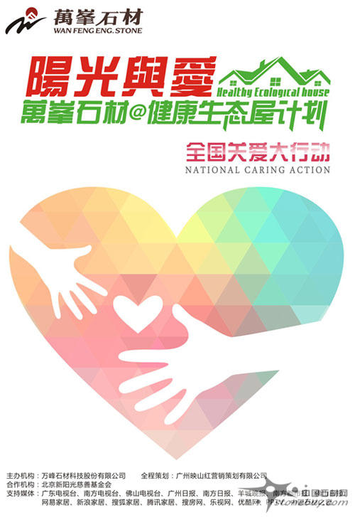 陽光與愛,萬峰石材http://www.stonebuy.com/@健康生態屋 全國關愛大行動合天時,占地利,聚人和,必將成為一場萬眾矚目、惠民惠商的建材行業盛事,2015年7月18日,讓我們共同期待,相聚廣州香格里拉酒店新聞發布會現場。