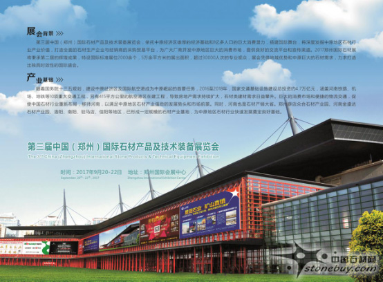 第三屆中國(guó)http://www.stonebuy.com(鄭州)國(guó)際石材http://www.stonebuy.com/產(chǎn)品http://www.stonebuy.com/sample/及技術(shù)裝備展覽會(huì),依托中原經(jīng)濟(jì)區(qū)雄厚的經(jīng)濟(jì)基礎(chǔ)和1億多人口的巨大消費(fèi)潛力,將深度發(fā)掘中原地區(qū)石材http://www.stonebuy.com/行業(yè)產(chǎn)業(yè)價(jià)值,打造全面的石材http://www.stonebuy.com/生產(chǎn)企業(yè)http://www.stonebuy.com/enterprise/與經(jīng)銷商的采購(gòu)貿(mào)易http://www.stonebuy.com/trade/平臺(tái),為廣大廠商開發(fā)中原地區(qū)巨大的消費(fèi)市場(chǎng)http://www.stonebuy.com/enterprise/FuJian/QuanZhouShi.html,提供良好的交流平臺(tái)和宣傳渠道。展會(huì)憑借地域優(yōu)勢(shì)和中原巨大的石材http://www.stonebuy.com/需求,力求打造出獨(dú)具時(shí)效性的國(guó)際盛會(huì)。