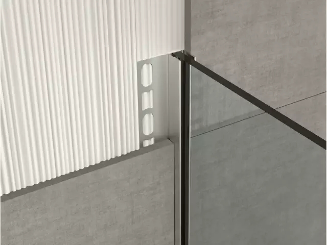 在衛生間墻地磚的鋪貼上,我們通常采取“墻壓地”的做法,因為縫隙小,美觀的同時防水效果也好。而收邊條不僅兼備這些優點,也讓空間品質感瞬間得以提升。