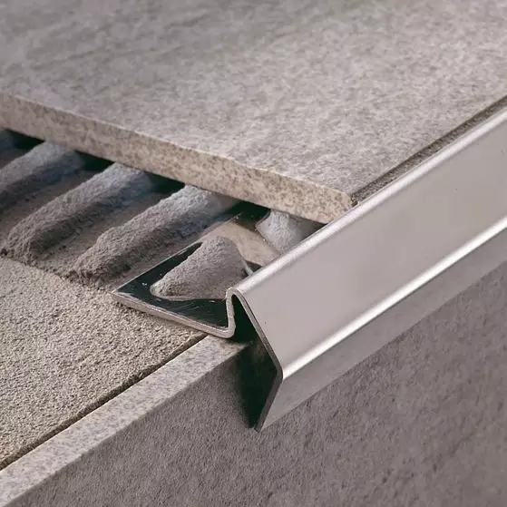 磚在陰角陽角收口時,通常采取45°角對拼的方式。這樣不僅容易崩邊、開裂,還存在一定的安全隱患。而圓潤的金屬收邊條不僅增強了裝飾效果,也一并消除了這些問題。