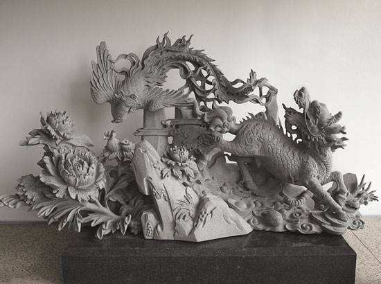 最后的一步就是,將石雕需要填充的區域用高沙粒度的砂紙輕輕磨砂,用干凈的布清除塵埃粒子。待表層石漿涂料干燥后再噴一層防水面漆。這樣石雕的修補工作就完成了。