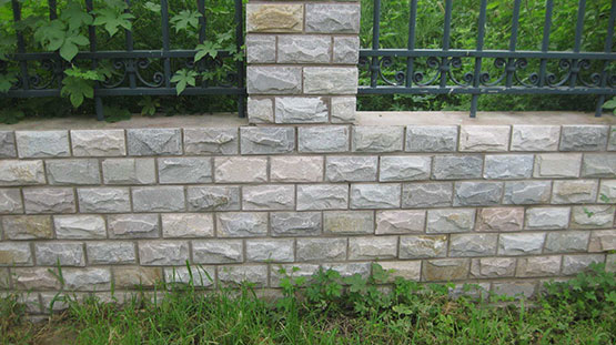 5、粘貼蘑菇石:應(yīng)由下而上進行鑲貼,粘結(jié)厚度宜為4~8mm。在粘結(jié)層初凝前或允許的時間內(nèi),可調(diào)整面磚的位置和接縫寬度,使之附線并敲實;在初凝后或超過允許的時間后,嚴禁振動或移動面磚。陽角處,以保證陽角相交成90度,陰角采用大包小做法。