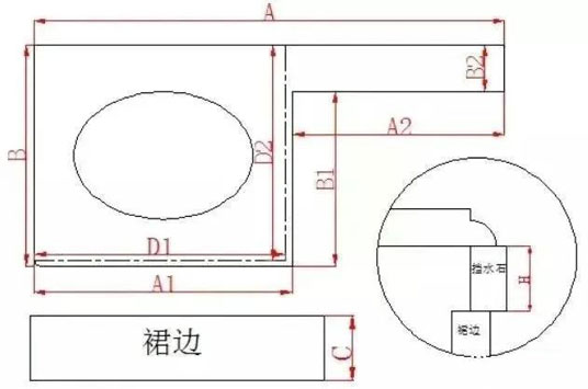 臺面石面積=A1*B+A2*B2+(A1+B1+A2)*H+(DI+D2)*C