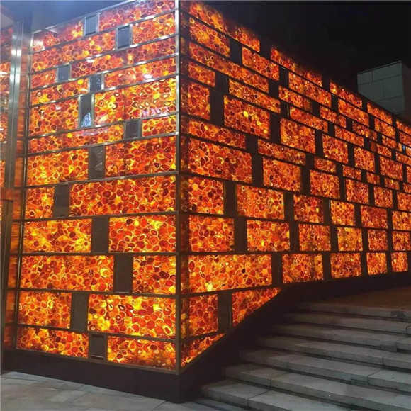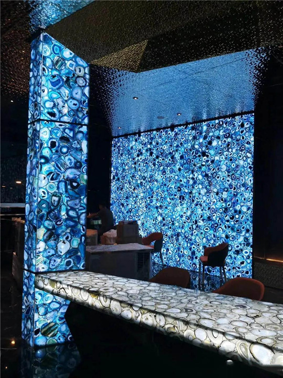 半寶石的材質是稀有獨特的,紋路也是天然獨特的,色彩豐富飽滿,深受人們的喜愛。將其應用在建筑上可以讓整個空間顯得高檔奢華起來,同時也可以彰顯出主人的品味。
