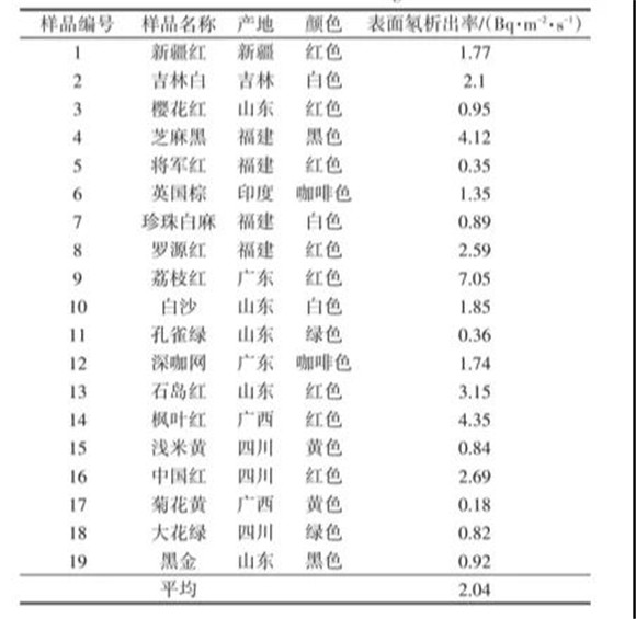 (19種花崗石氡析出率的分析結(jié)果)