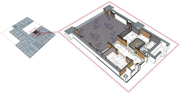 上圖我們以一套酒店套房作為案例,通過對平面圖紙分析梳理,結合現場情況,確定出適合本工程的基層施工做法。