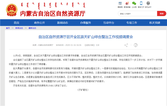 內蒙古自治區自然資源廳召開全區露天礦山綜合整治工作視頻調度會