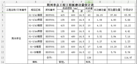案例:荊州李總工程加工面積、出材率統計