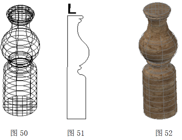 圖50的圖形是由圖51截面繞L線形成的旋轉(zhuǎn)體,用這種旋轉(zhuǎn)構圖法可以生成花瓶柱、花瓶等圓柱類產(chǎn)品http://www.stonebuy.com/sample/。圖52為貼材質(zhì)后的產(chǎn)品http://www.stonebuy.com/sample/