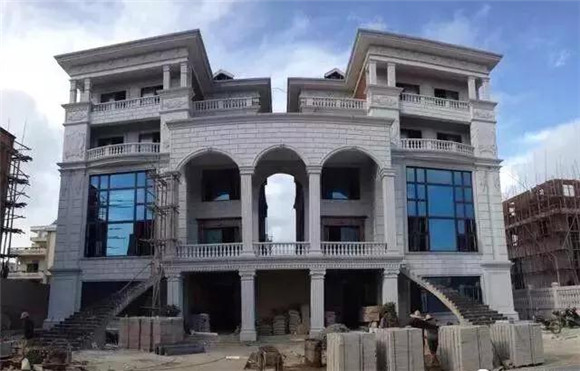 下面以黃金麻中黃荔枝面為例。平板規格板價格大概在兩百左右一平,以下分別列出樣板和最后別墅效果外觀。