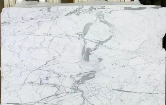 天然大理石;材料特征:底色白、紋路均勻。主要的問題是部分荒料的底色偏暗,及有紋路不均現象。總體來說還是比較穩定的。