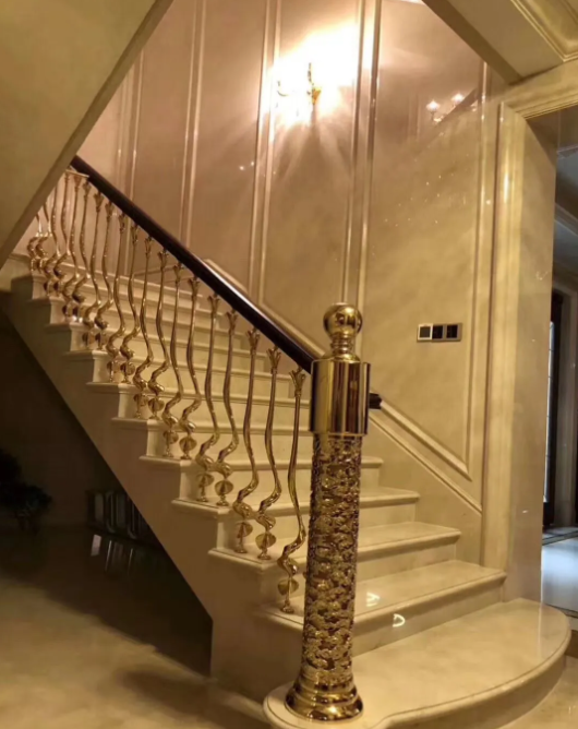 而大理石作為熱門的裝飾材料,在這些高檔的住宅里自然成為樓梯側(cè)墻板裝飾材料的佼佼者,其裝飾感十足,精致的腰線與踢腳線的設(shè)計(jì)應(yīng)用與側(cè)板鑲嵌,完美的體現(xiàn)出住宅的豪宅之風(fēng)!