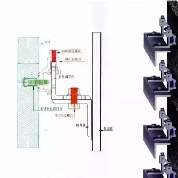 鋼銷式干掛工藝是利用高強螺栓和耐腐蝕、強度高的柔性連接件將薄型飾面板掛在建筑物結構的外表面,或型鋼骨架上,板材與結構表面之間留出一定的空腔。