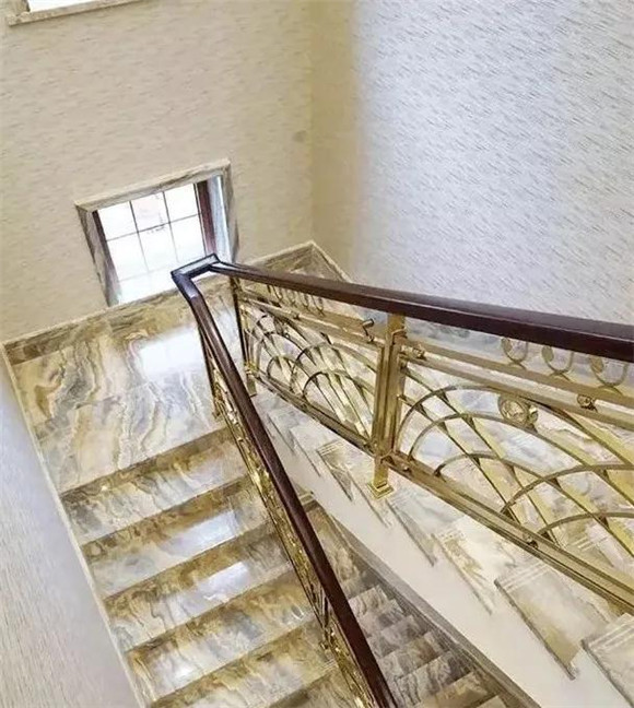 3、大理石樓梯組合料的長度要比原樓梯長40毫米,兩端分別長出原樓梯20毫米。用以下道工序裝飾。