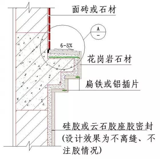 1、所有腰線必須保證上平面有坡度,下有滴水功能;