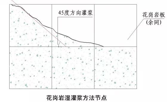 5、灌水泥砂漿時要求成45度方向灌實,所有腰線頂面板及壓頂板嚴禁半干粉砂漿鋪板,必須使用流動的水泥砂漿鋪貼面板。