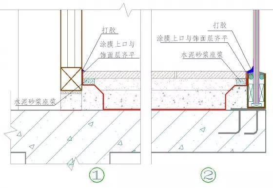 外門框安裝時,門框底口高出室內毛坯房交付地面30mm。