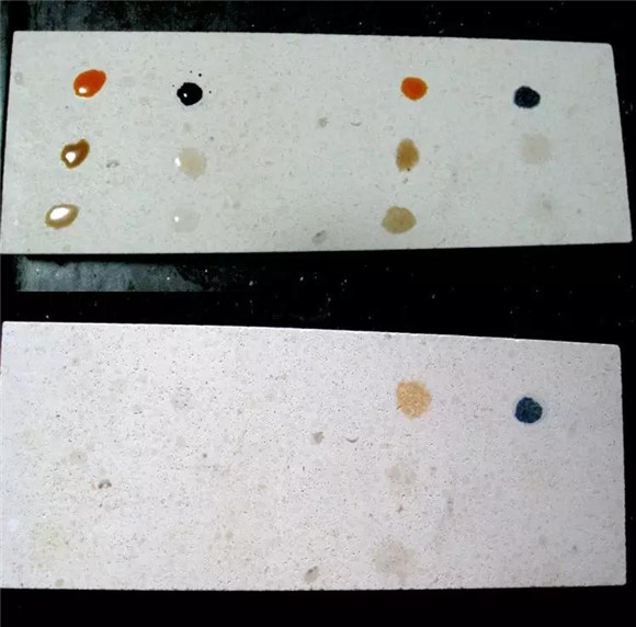 1、色素污染的判別石材http://www.stonebuy.com/色素污染主要是由于有色污染物滲入石材http://www.stonebuy.com/毛細孔內,所造成的殘留,或因某些污染物由于水、空氣以及石材http://www.stonebuy.com/本身相互間發生作用殘留下來的污漬。一般通過污漬顏色及結合現場來大致判斷出污染種類,由此制定處理辦法。