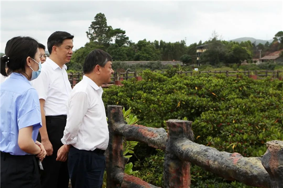 位于廣西防城港市的北侖河口國家級自然保護區總面積3000公頃,是國家和國際重要濕地,以紅樹林生態系統為主要保護對象。7月4日下午,黃潤秋前往北侖河口國家級自然保護區,現場聽取地方負責同志關于自然保護區和紅樹林保護情況的介紹,詳細詢問紅樹林面積、品種、自然保護區內生物多樣性等情況,并沿著棧橋察看紅樹林生長狀況。黃潤秋對自然保護區紅樹林的保護成效表示肯定,他指出,紅樹林是最富有生物多樣性的海洋生態系統之一,在凈化海水、防風消浪、固碳儲碳、維護生物多樣性等方面發揮著重要作用。要深入貫徹落實習近平總書記視察廣西時關于紅樹林保護的重要指示精神,尊重科學,落實責任,把紅樹林保護好。要開展科學研究,強化對珍稀品種的保護,提高紅樹林存活率,讓紅樹植物群落更加豐富。要加大巡查執法力度,禁止非法占用灘涂,對保護區內和保護區外的紅樹林都要做好保護修復,讓紅樹林連成片、串成帶,筑牢海洋生態安全屏障。