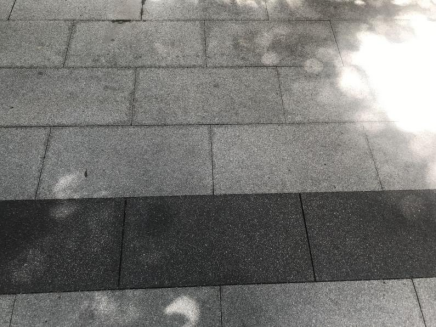雖然筆者所看只可能是個例,但管中窺豹可見一斑,反映了這種復合出的“PC”磚是存在很大的問題的。事實上也是如此。有朋友給筆者提供了佐證。圖3是朋友提供給筆者的圖片。從圖3可以看出“PC”磚表面的面層經過歲月的摧殘,面層被磨損掉了,底層完全曝露出來了。如此的“PC” 磚廠家竟然口出狂言勝過天然花崗石,真是牛皮吹得也太大了。不難想象,只有面層5mm的“PC磚”,安裝于人流穿梭不息的市政道路上,如何能經受這日日夜夜的摩擦,偶爾還有小車、電動車的沖擊,加上大自然的日曬雨水的洗禮呢?相比通體的花崗石,“PC”磚應該是不堪一擊的。
