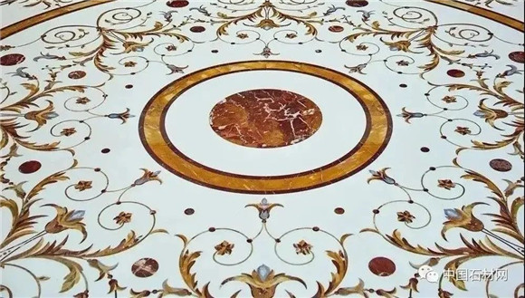 石材http://www.stonebuy.com/設(shè)計(jì)做拼花是個(gè)很令人煩惱的事情。大理石裂紋多,象西班牙米黃、舊米黃、爵士白、金蜘蛛、紫羅紅、黑白根等材料。如果設(shè)計(jì)這些材料做拼花的話,不僅拼花生產(chǎn)加工時(shí)很麻煩,加工過程中拼件斷裂嚴(yán)重,加工費(fèi)時(shí)費(fèi)力,加工出來的拼花質(zhì)量由于表面裂紋效果不好。圖2拼花是2019年筆者管理的工廠接手加工的喀中港項(xiàng)目工程的一套拼花,拼花就是兩種材料加工。一種材料是黑白根,一種材料是爵士白,兩種材料都是裂紋較多的材料。加工時(shí)水刀機(jī)切割好后就出現(xiàn)斷裂。一套不到10平方的拼花加工4天時(shí)間,而且加工出來拼花質(zhì)量表面裂紋處理的質(zhì)量并不理想。
