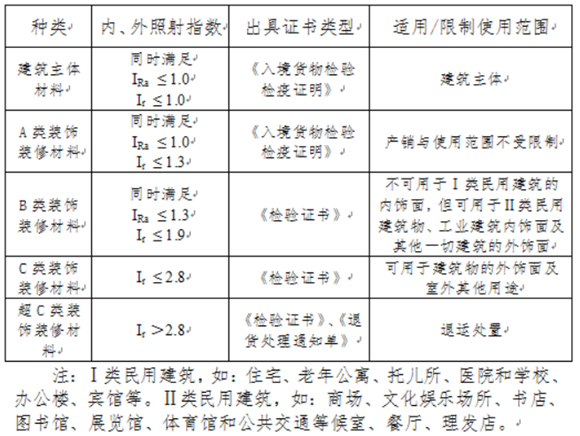 《建筑材料放射性核素限量》中要求C類裝飾裝修材料Iγ≤2.8的限量。