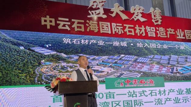 中云石海石材http://www.stonebuy.com/智造產(chǎn)業(yè)園董事長(zhǎng)關(guān)海棠現(xiàn)場(chǎng)講話。
