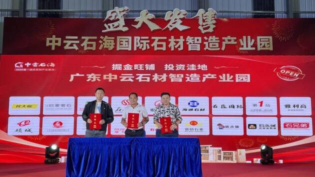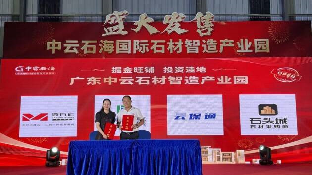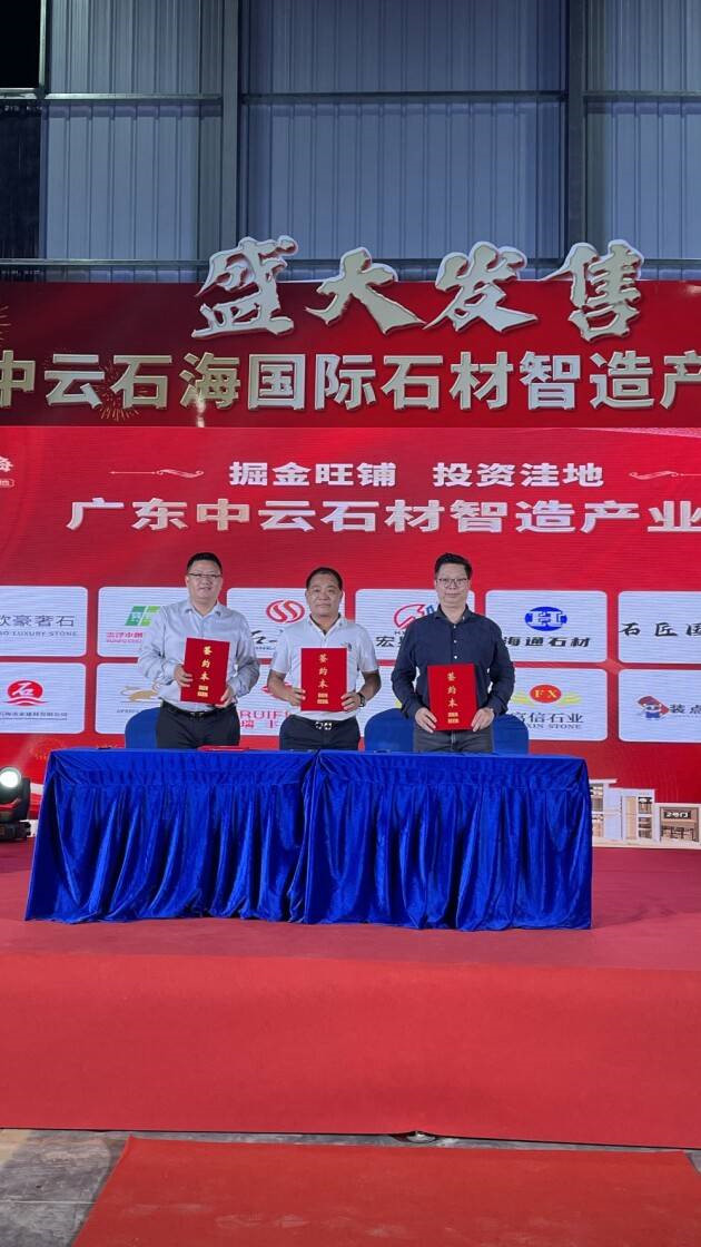 遙遙領(lǐng)先!非凡“智造”!石都傾力之大項(xiàng)目——中云石海閃耀世界,董事長(zhǎng)關(guān)海棠與入駐企業(yè)http://www.stonebuy.com/enterprise/廣東石海美家建材、云浮市碩城石業(yè)、云浮市歐豪石材http://www.stonebuy.com/、云浮市小石頭網(wǎng)絡(luò)科技現(xiàn)場(chǎng)簽約。