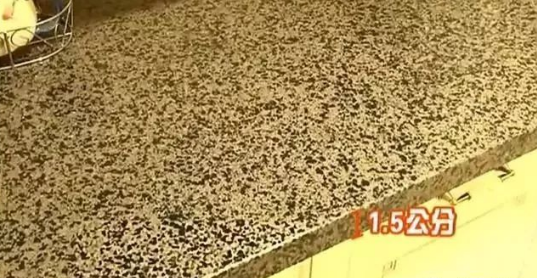 一般做廚房臺面的石英石,厚度要達到1.5公分(cm)以上,這個厚度抗震能力強、能讓臺面有韌性。有的廠家為了節省成本、偷工減料厚度只有1.3公分,那么這樣的臺面容易斷裂。