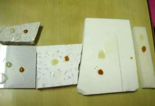 b:用食用油或則醬油倒在石英石臺面上,一天后,如果滲透了,那么同樣是劣質的,反之就是優質的。