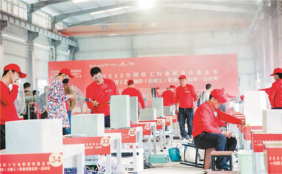 在惠安舉行的全國石雕工職業技能競賽現場。(資料圖片)
