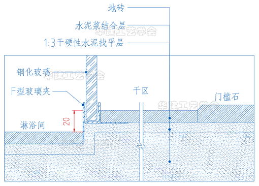 基層處理→防水涂料→滿鋪1:3干硬性水泥找平→水泥砂漿結合層→鋪貼瓷磚