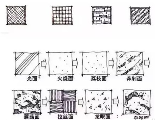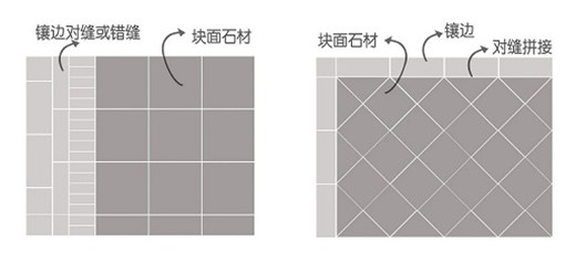 石材http://www.stonebuy.com/提前根據設計大小尺寸加工,現場拼接時要求板間縫隙均勻,可細沙掃縫也可原色水泥漿勾縫(縫寬根據設計效果定),勾縫面低于板面1~~1.5mm,板材短邊≥150,保證每塊板至少4~6個邊,拼鋪禁止出現平行紋,直角紋及內角,禁止出現四條以上邊縫匯集一個交點。