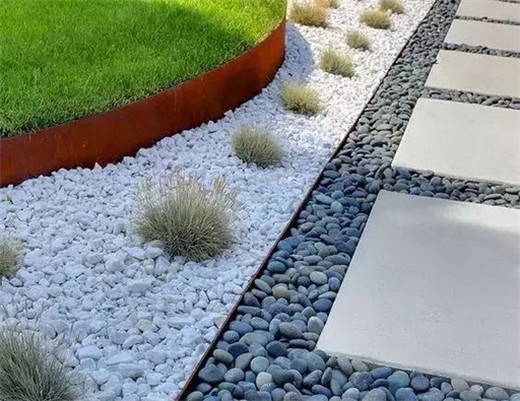 ▼不同顏色的礫石之間用鋼板分隔開以實現干凈整潔的效果。