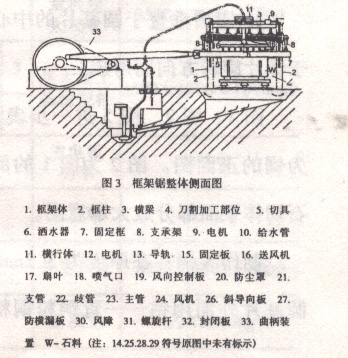 眾所周之,框架鋸是一種常用于切割圈套規格的荒料的石材http://www.stonebuy.com/加工機械http://www.stonebuy.com/machine/。它是在框架體內安裝切割系統,在其下方放置待切割荒料,當多個刀具開始水平狀往復運行時,由灑水器割進,隨著切割摩擦熱的產生,切割加工部位產生的含塵水蒸氣向上飛散到外部,使粉塵呈懸浮狀態,嚴重污染切割系統周圍的環境。為了不使粉塵向框架體外分散,設計都民曾采取過一些防塵措施,但防塵效果不理想。對此一種高效面復合的框架鋸防塵系統在海外問世。
